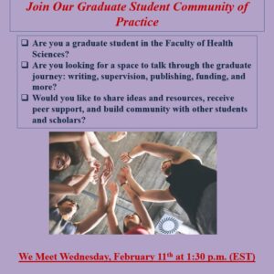 Monthly virtual meetings that provide the opportunity for graduate students to share resources and ideas, receive peer support, and build new relationships. Meetings include formal and informal presentations (topics and speakers chosen by CoP), discussions, and debates to support the graduate student experience.